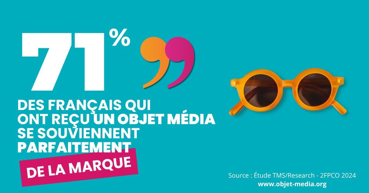 - Le taux de mémorisation atteint 71,3 % : c’est le pourcentage de Français qui se souviennent parfaitement de la marque ayant offert un objet média.