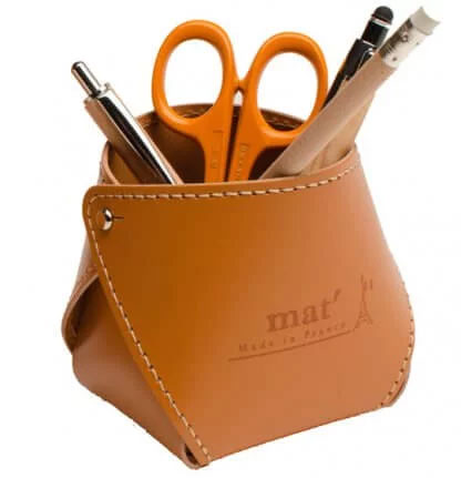 Fabriqué à partir de cuir recyclé, ce pot à crayons valorise une matière seconde vie tout en apportant une touche élégante et premium à l’espace de travail.