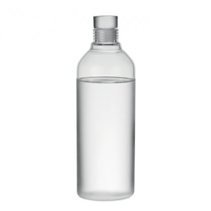 Cette grande bouteille en verre borosilicate publicitaire peut contenir 1 litre. Son bouchon est également en verre et antifuite.