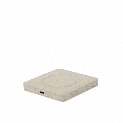 Ce chargeur par induction promotionnel fonctionnant avec les smartphones compatibles est fabriqué à partir d’ABS (65%) et de fibres de blé (35%). (Input : 5V/1A et Output : 5V/1A).