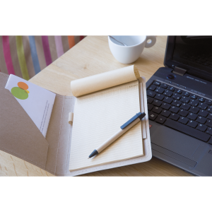 Ce conférencier au format A5 est fabriqué à partir de carton recyclé.