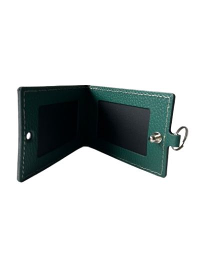Ce porte-badge mesure 11,5 x 7,5cm et il se ferme par un bouton de cartouchière