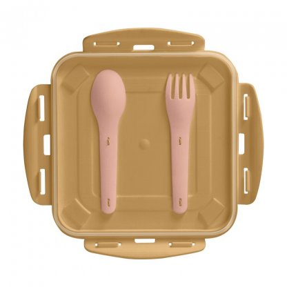 Ce bento promotionnel est livré avec une fourchette et une cuillère fixées sous le couvercle, ainsi que de quatre clips et d’un joint en silicone pour assurer une parfaite étanchéité.