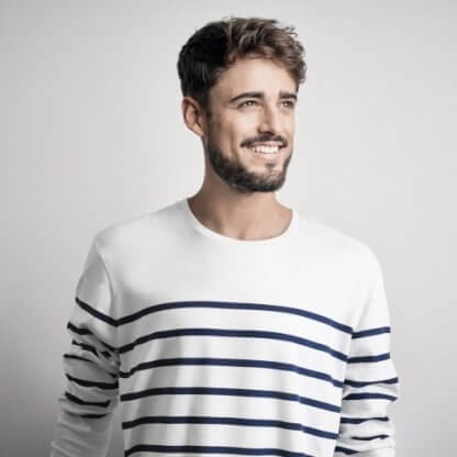 De couleur écru avec des rayures bleues marines, cette marinière a une coupe ajustée. Elle possède plusieurs tailles : S, M, L, XL, XXL, 3XL.