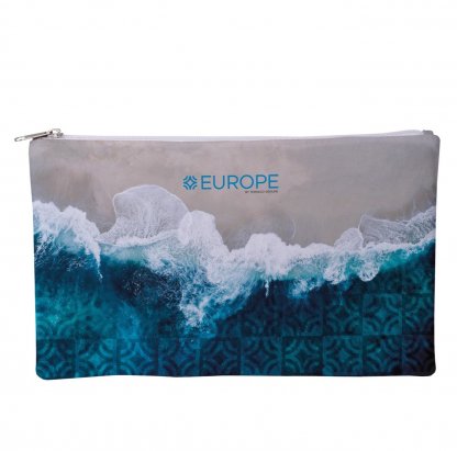 Cette pochette blanche peut être personnalisée avec le logo de votre entreprise ou le message publicitaire de votre choix. Avec supplément, nous pouvons personnaliser ce sac avec un marquage bord à bord.