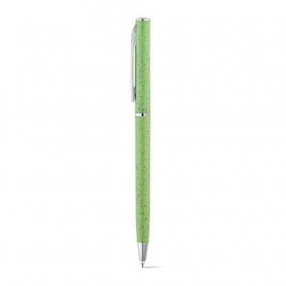 Ce stylo à bille publicitaire avec encre noire est fabriqué avec 50% de paille de blé et 50% d’ABS.