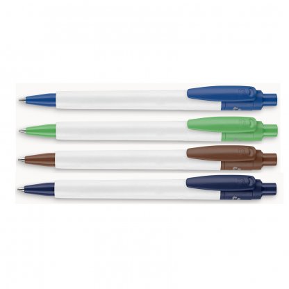 Ce stylo bille publicitaire est fabriqué en Italie à partir de plastique recyclé.