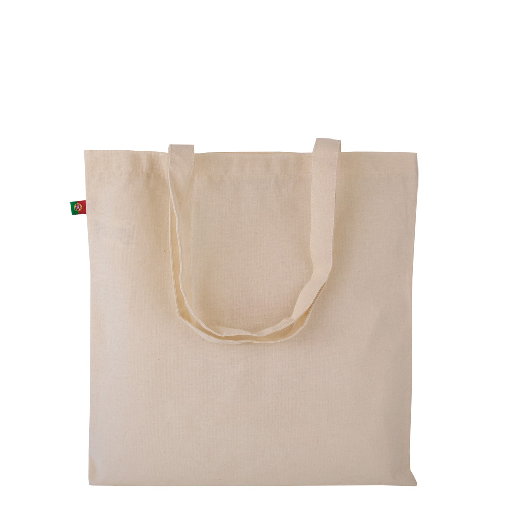 Ce tote-bag publicitaire est tissé, cousu et marqué au Portugal à partir de coton conventionnel de 150g/m².