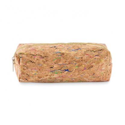 Cette trousse publicitaire fabriquée en liège naturel avec incrustations de couleurs est personnalisable avec le logo de entreprise.